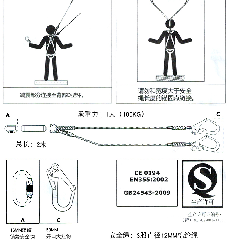 3M(凯比特) 1390019 保泰特First双钩减震连接绳